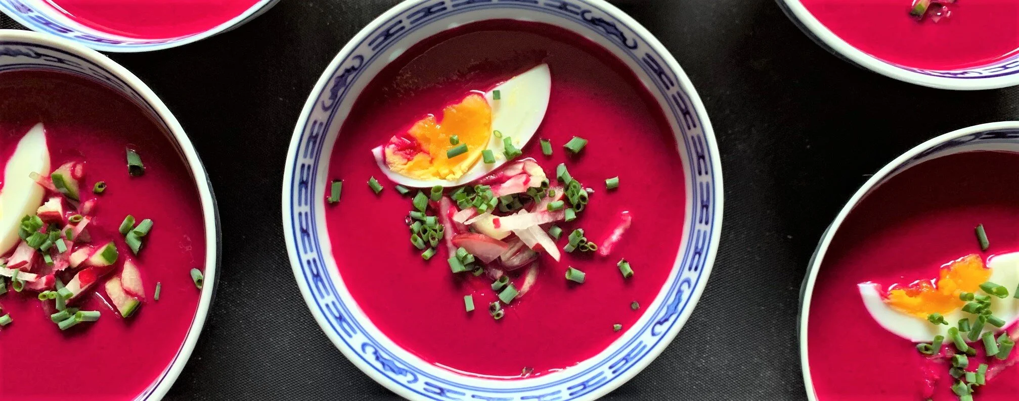 Inspired by Polish chlodnik, I made this chilled beetroot soup for one of our Twilight Gardening dinners this summer. It was surprisingly popular, I often think chilled soups can be a bit divisive – but that might be because Jo is always a bit suspicious when I suggest a chilled soup. The colour is so gorgeously pink and the earthy beets are balanced out with the tangy buttermilk and little sweetness from the date syrup. If you don’t have date syrup in the cupboard you can use a little honey instead.